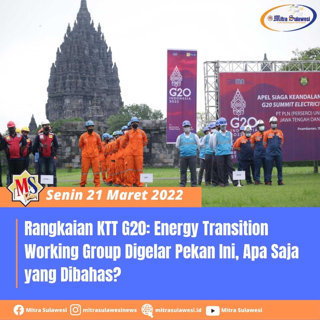 Dalam serangkaian Presidensi G20, terdapat Sidang Energy Transition Working Group (ETWG) yang dihadiri oleh 20 negara anggota G20, 10 negara undangan, dan 8 organisasi internasional, baik secara langsung maupun virtual.