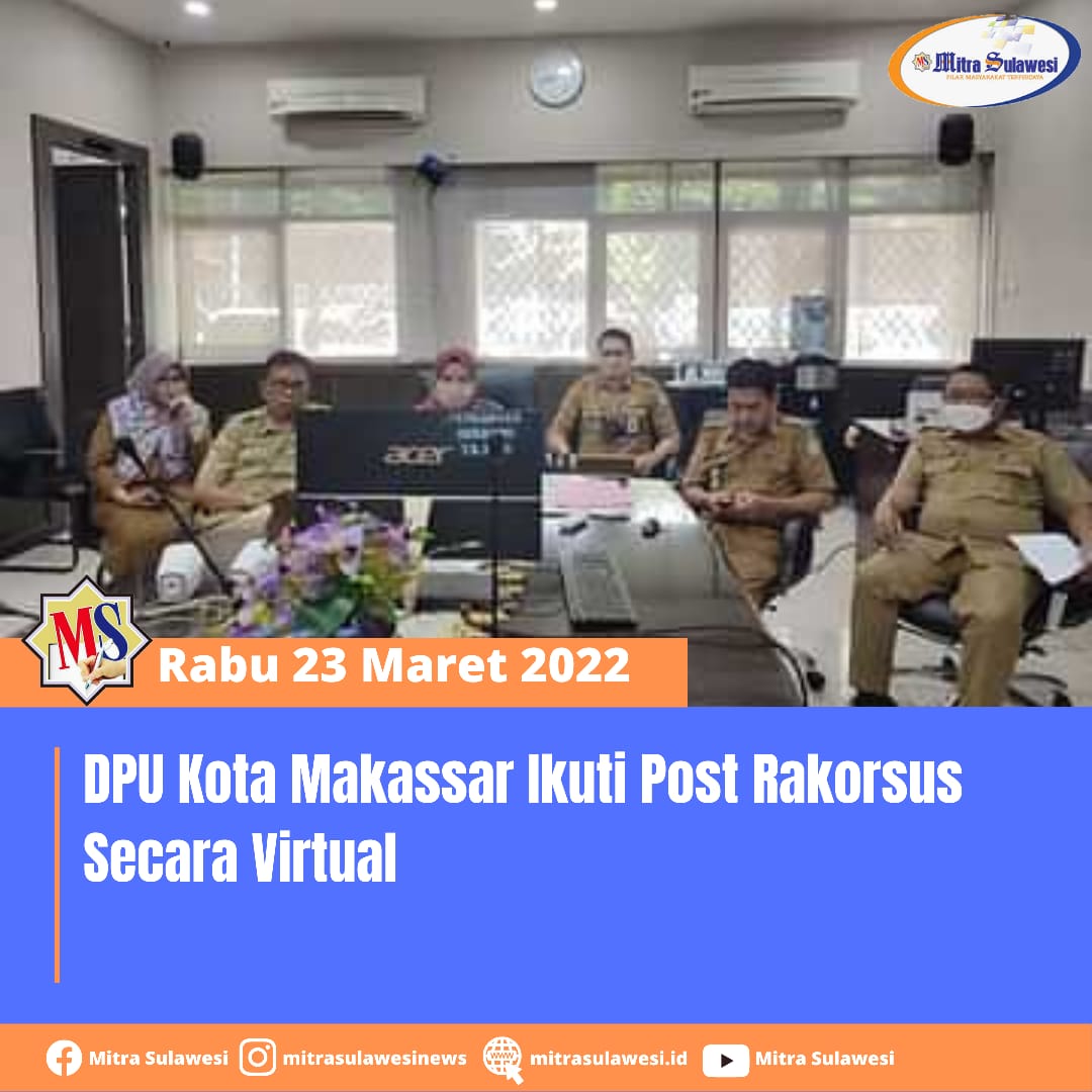 Para jajaran Dinas PU Kota Makassar mengikuti Post Rakorsus tersebut secara virtual via meeting zoom di Ruang Rapat Dinas PU, Rabu 23 Maret 2022.