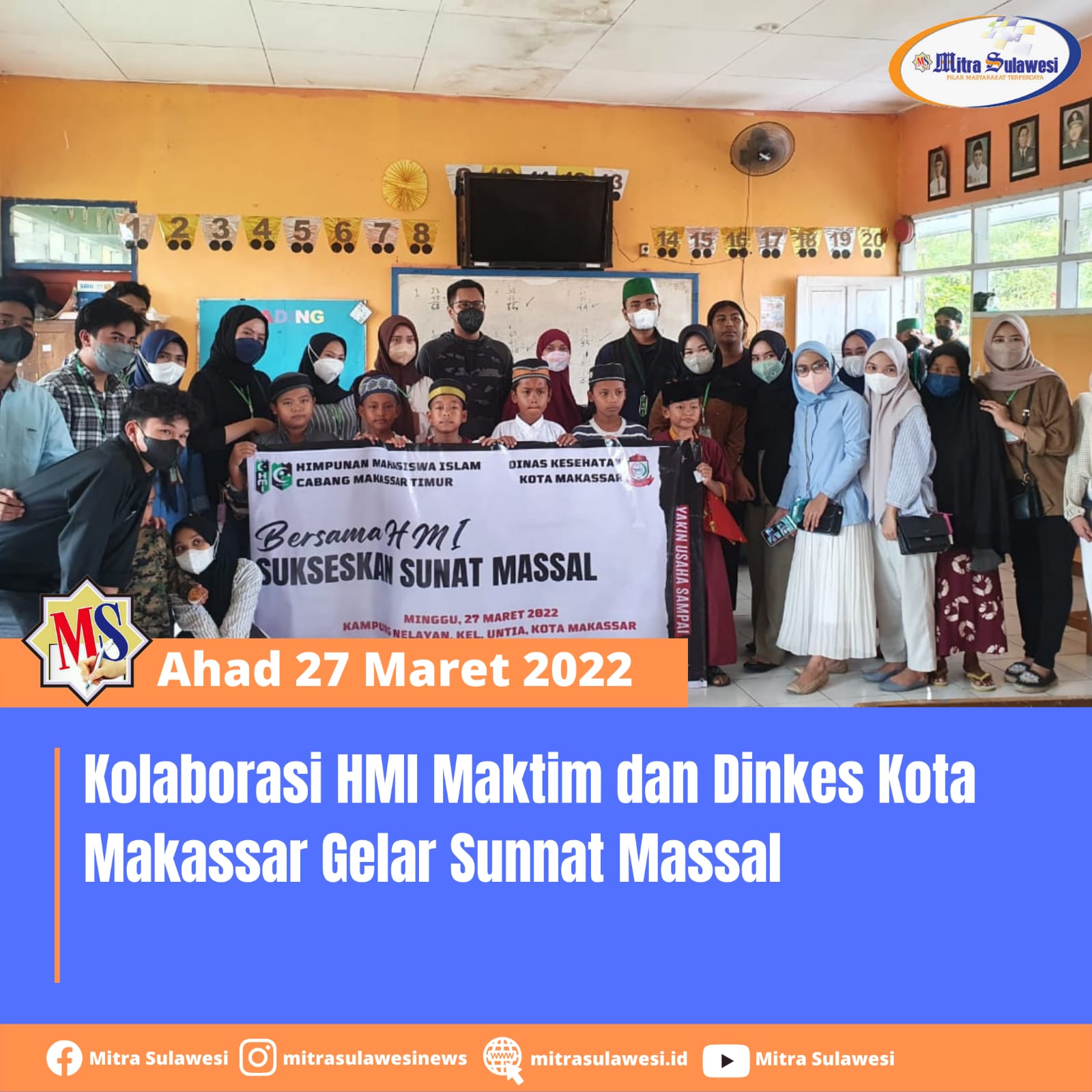 Kegiatan yang mengusung Tema “Bersama HMI Sukseskan Sunat Massal” dilaksanakan di Kampung Nelayan Kelurahan Untia, Kecamatan Biringkanayya, Makassar, Ahad, 27 Maret 2022.