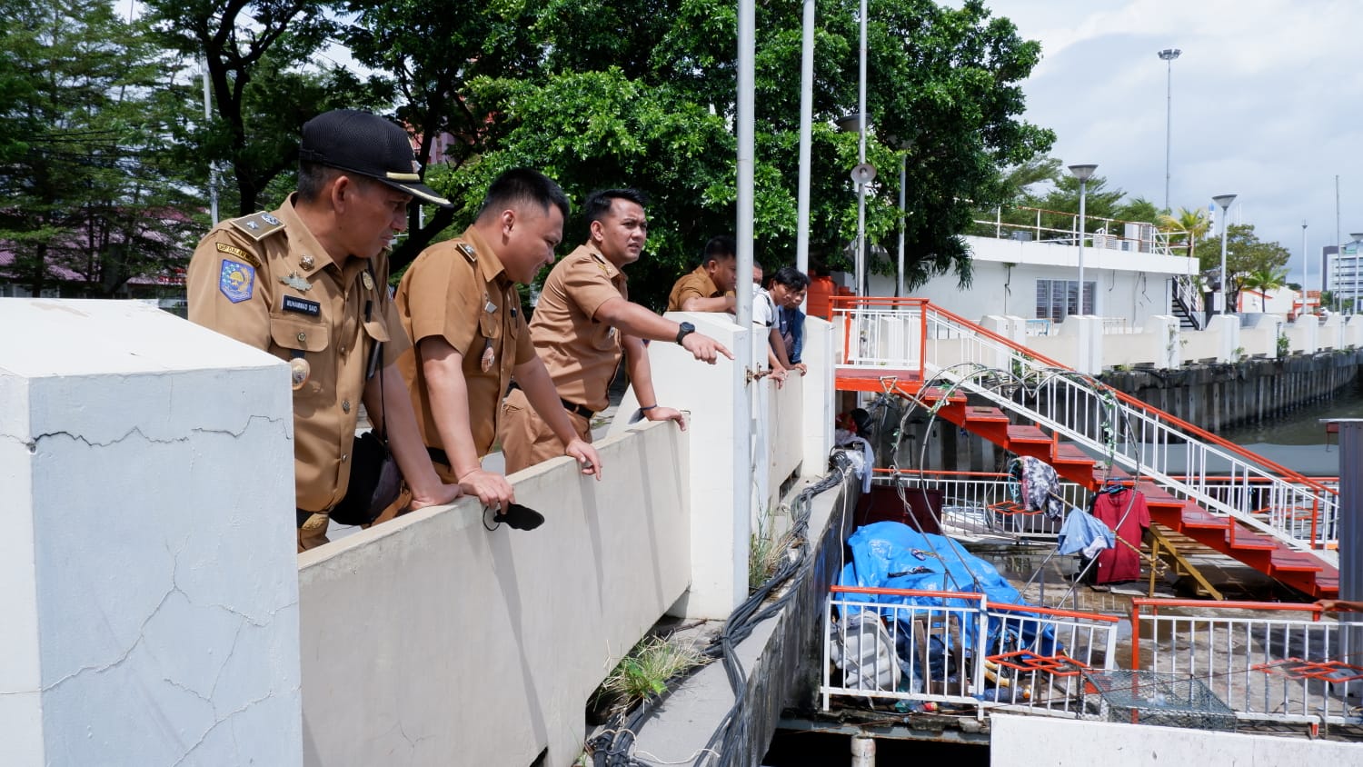 Makassar, mitrasulawesi.id — Camat Ujung Pandang, Syahrial Syamsuri, S.IP, M.M bersama Lurah Maloku, Lurah Losari, Lurah Lae-Lae dan kasi kebersihan Kecamatan Ujung Pandang melaksanakan Pemantauan kebersihan laut di area Masjid Amirul Mukminin dan sepanjang pesisir Anjungan Pantai Losari(10/05/2022).