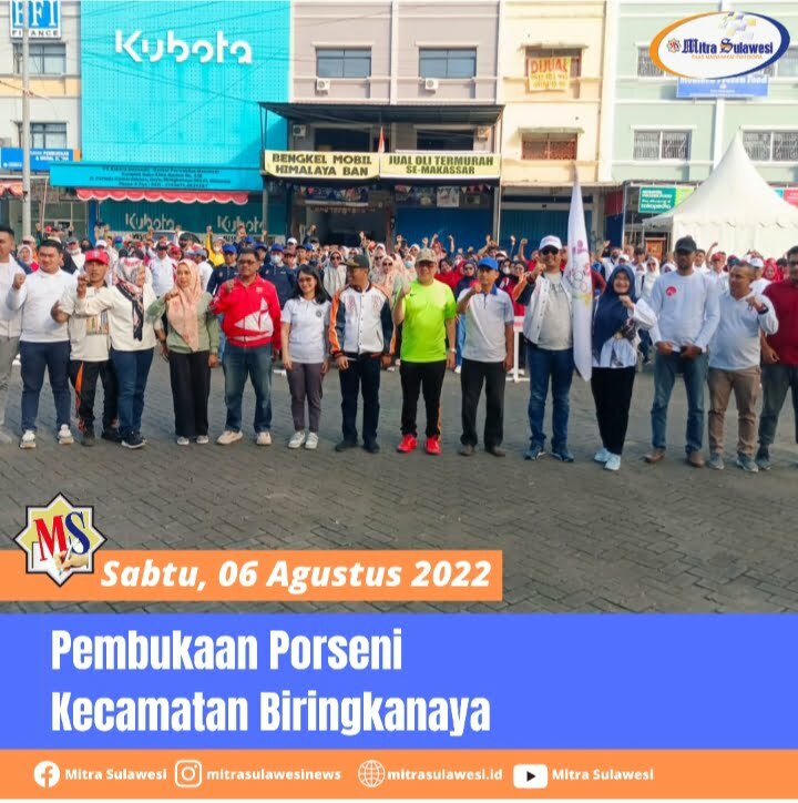 Makassar, mitrasulawesi.id — Camat Biringkanya buka pekan olah raga Tingkat Kecamatan Biringkanaya , Apel pembukaan Porseni tingkat Kecamatan Biringkanaya dilaksanakan dihalaman ruko Kima jl Perintis Kemerdekaan km 15 Kelurahan Daya Kecamatan Biringkanaya, Sabtu 06 Agustus 2022.