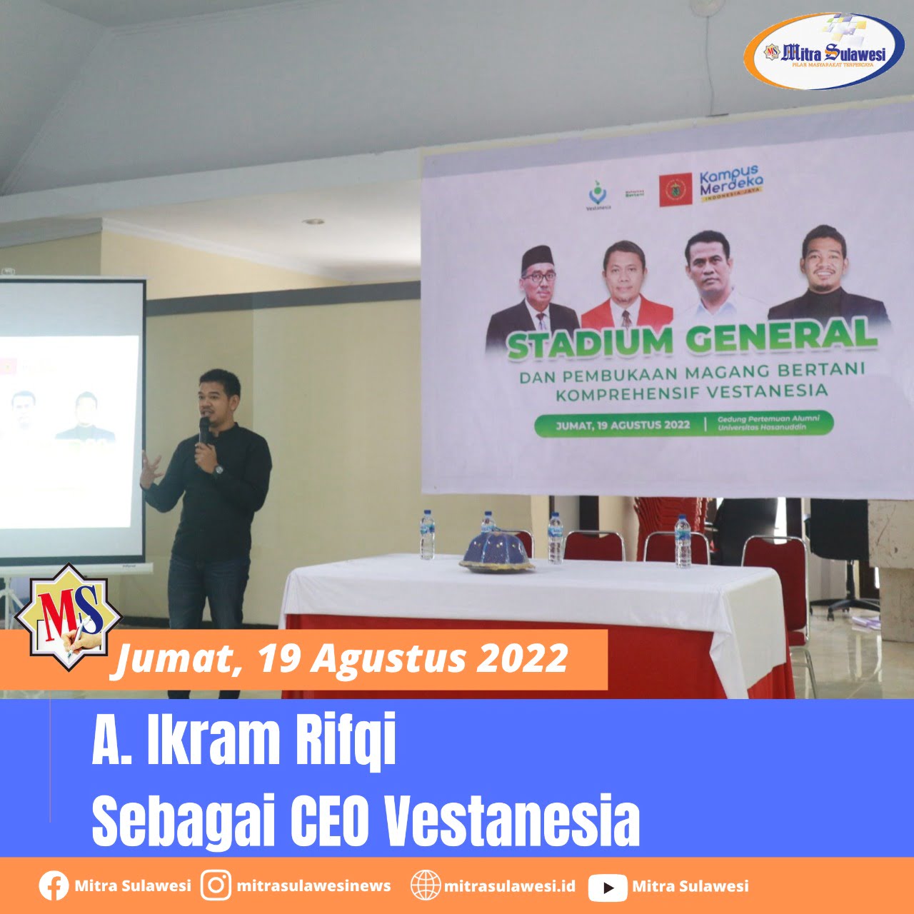 Makassar, mitrasulawesi.id — PT Karya Petani Indonesia dengan resmi membuka Magang Bertani Komprehensif di Gedung Pertemuan Alumni Universitas Hasanuddin yang dibuka langsung oleh A. Ikram Rifqi sebagai CEO Vestanesia, Jumat (190l/08/2022).