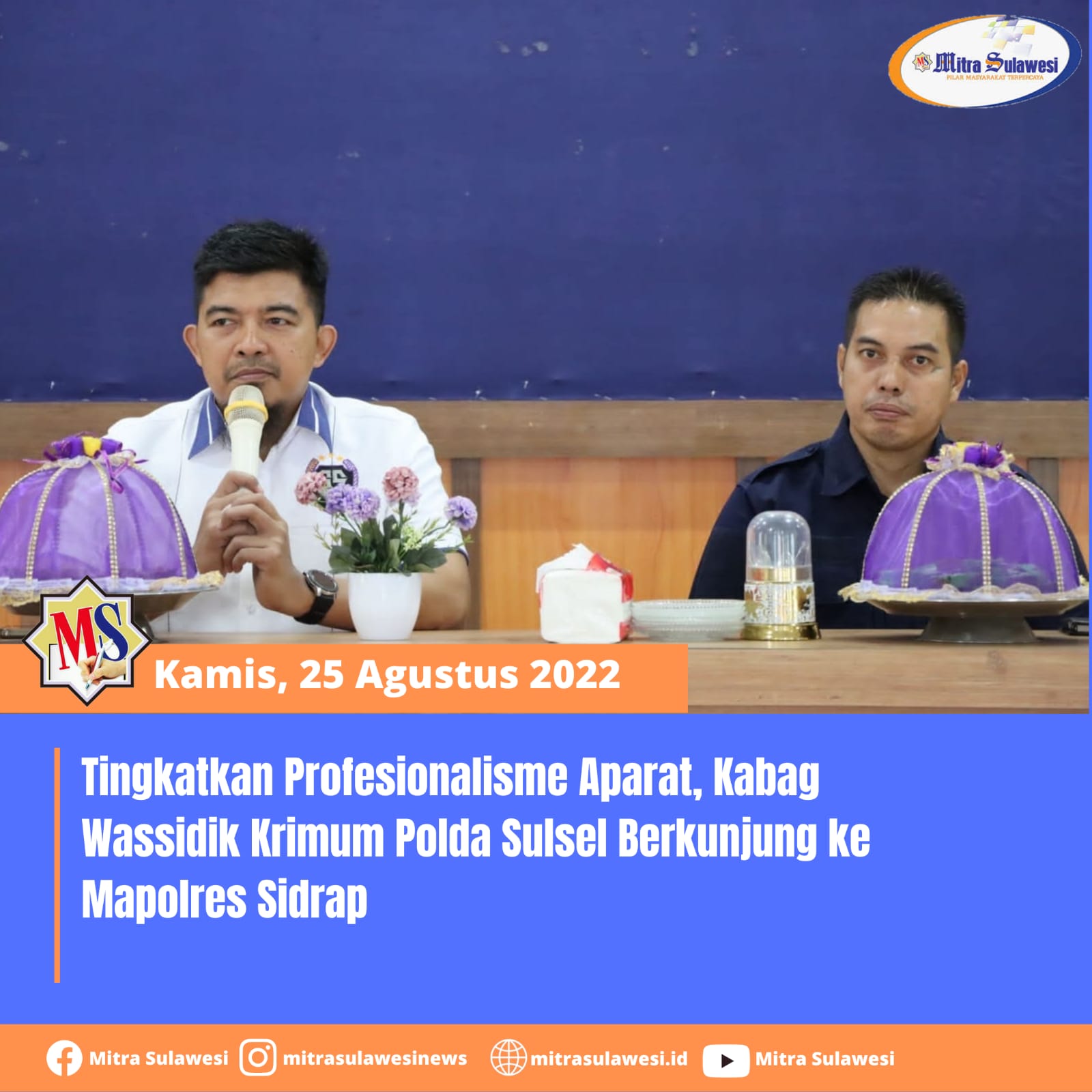 “Selamat datang tim bag wassidik Polda Sulsel yang di pimpin oleh Kabag Wassidik AKBP Muhammad Kadarislam Kasim. S.H., S.I.K., M.Si beserta 4 orang anggota di Mapolres Sidrap, Kami Personil Satreskrim Polres Sidrap beserta jajaran Polsek siap menerima bimbingan dan arahan,” ungkap AKP Saharuddin
