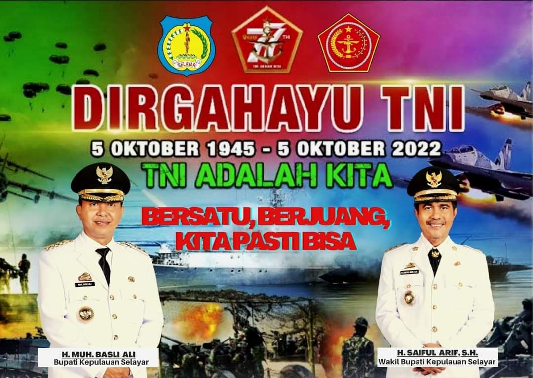 Bupati Kepulauan Selayar H. Muh Basli Ali (MBA) secara khusus menyampaikan ucapan selamat ulang tahun kepada seluruh jajaran TNI.