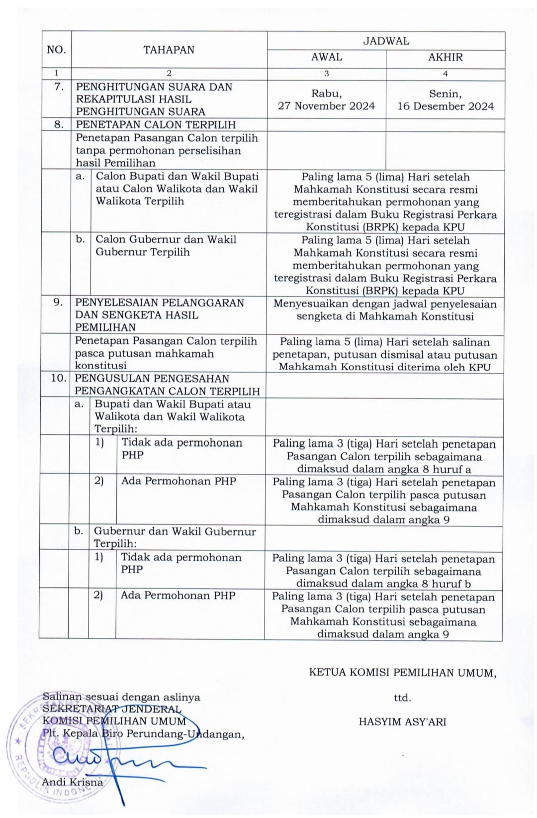 27 November 2024 Pelaksanaan pemungutan suara.