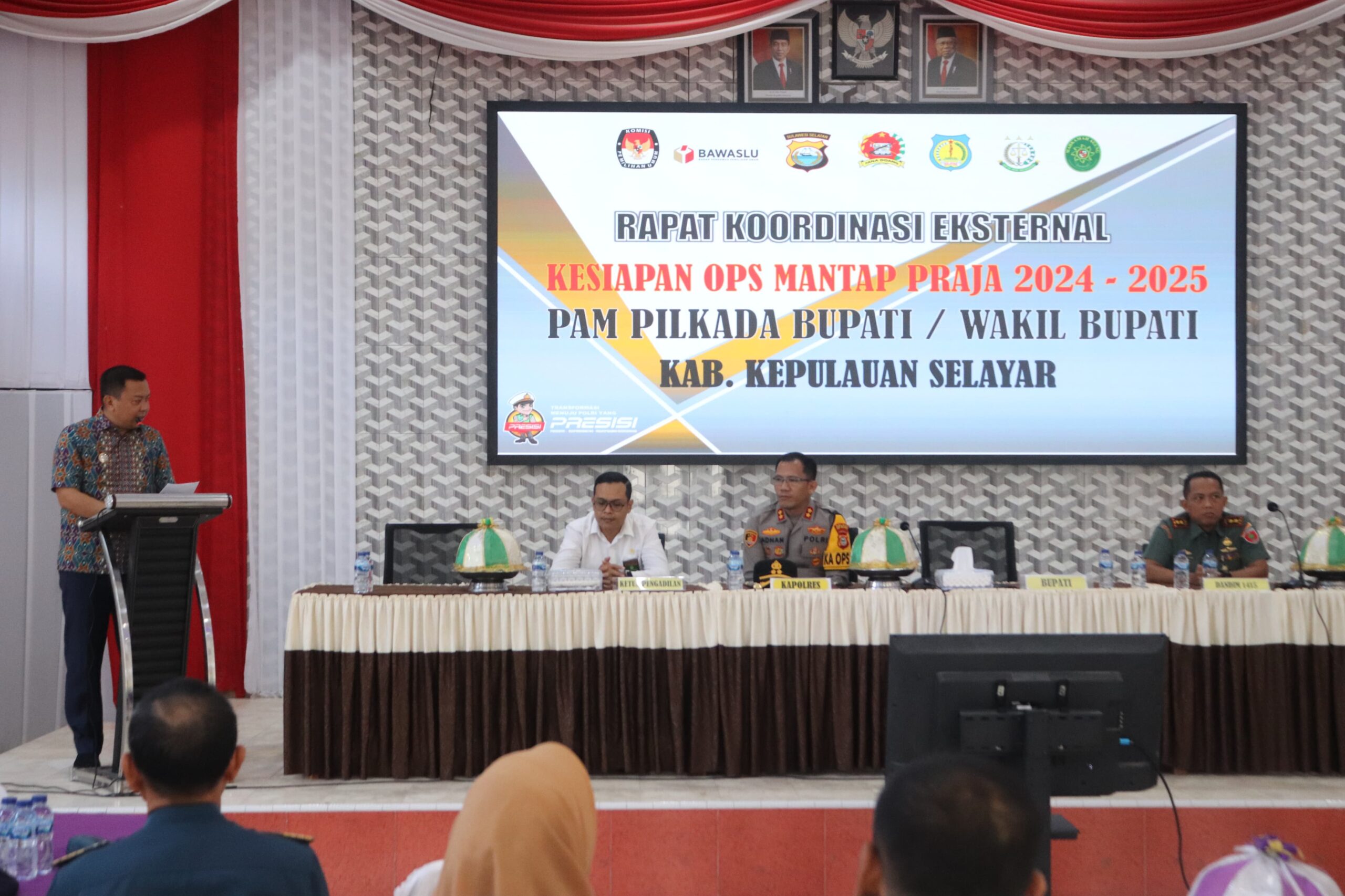 SELAYAR, mitrasulawesi.id – Bupati Kepulauan Selayar H. Muh.Basli Ali menghadiri Rapat Koordinasi Eksternal Operasi Mantap Praja – 2024-2025 dalam rangka Kesiapan Pengamanan Tahapan Pilkada Bupati/Wakil Bupati, di Aula Mapolres, Senin (22/07/24) pagi.