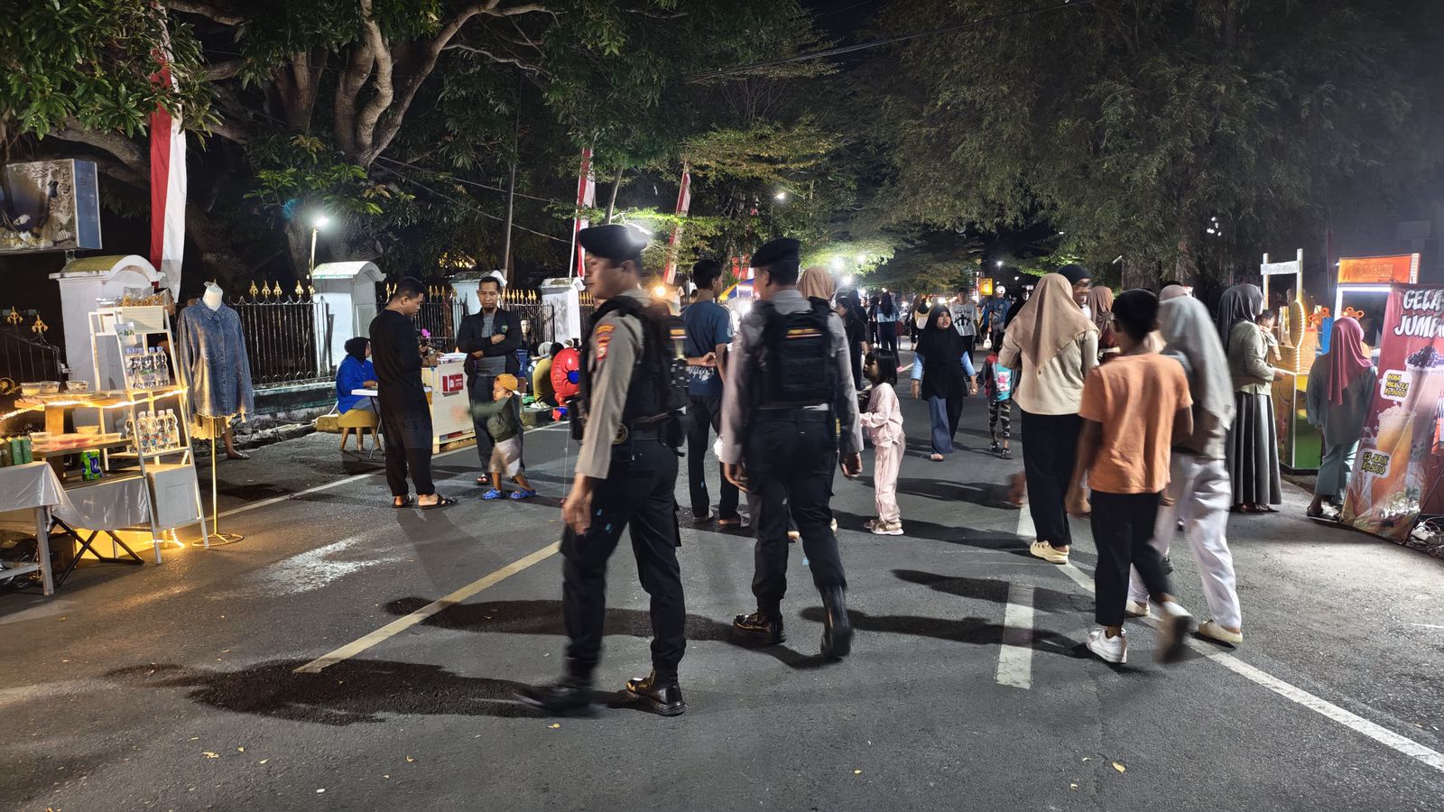 Patroli ini digelar untuk memastikan keamanan serta memberikan rasa nyaman bagi masyarakat dan pelaku Usaha Mikro Kecil Menengah (UMKM) yang beraktivitas di sekitar Lapangan Pemuda.