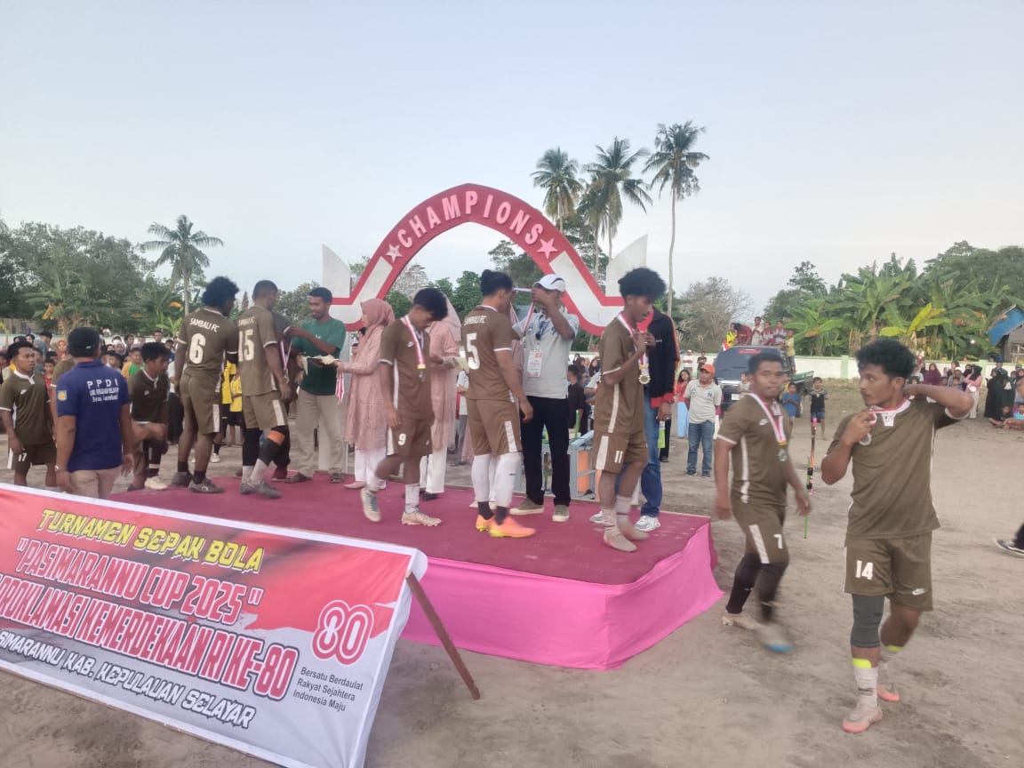 Turnamen Sepak Bola Pasimarannu CUP 2025 resmi ditutup usai laga final antara Persemo FC dan Sambali FC yang berlangsung di lapangan Garuda Bonerate, Kecamatan Pasimarannu, Kabupaten Kepulauan Selayar, Senin 1 September 2025 sore.