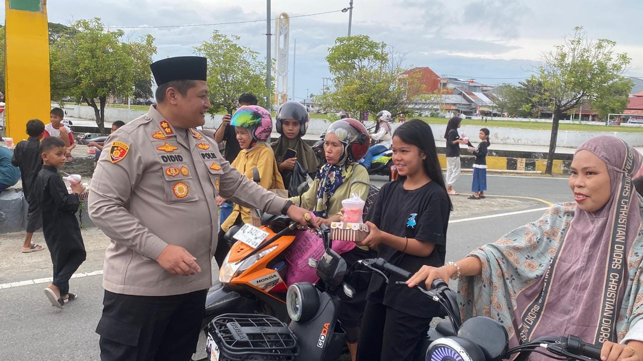 Didampingi para Pejabat Utama Polres Kepulauan Selayar serta pengurus Bhayangkari turun langsung ke jalan membagikan takjil kepada masyarakat yang melintas di depan Mapolres dengan penuh keakraban.