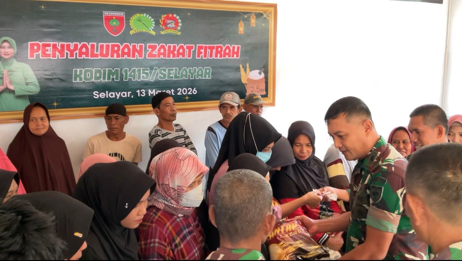 Selayar, mitrasulawesi.id – Kodim 1415 Selayar melaksanakan kegiatan penyaluran zakat fitrah kepada masyarakat yang berhak menerima, Jumat, 13 Maret 2026 pukul 10.00 Wita bertempat di Masjid Sabilul Muhtadin Makodim 1415/Selayar, Jl. Kelapa No.10, Kelurahan Benteng Utara, Kecamatan Benteng, Kabupaten Kepulauan Selayar.